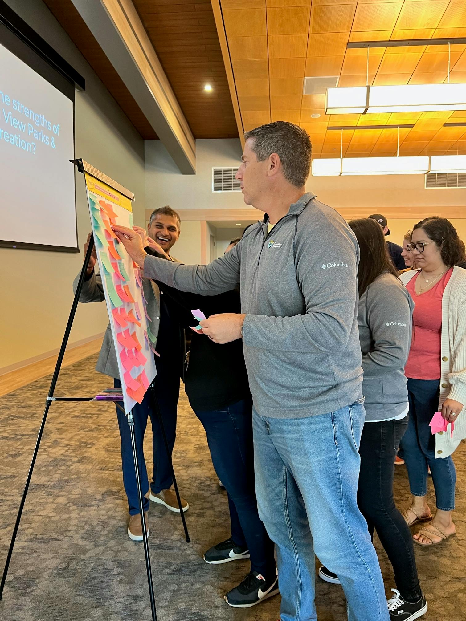 Share What's going on in the background? on Facebook Share What's going on in the background? on Twitter Share What's going on in the background? on Linkedin Email What's going on in the background? linkWe launched a series of community and stakeholder meetings in early August to kick off the Parks and Recreation Strategic Plan project. As we continue to seek community feedback through pop-ups, intercept surveys, and the project website, we are actively working on various tasks in the background. Here’s what’s happening from September through December 2023:
